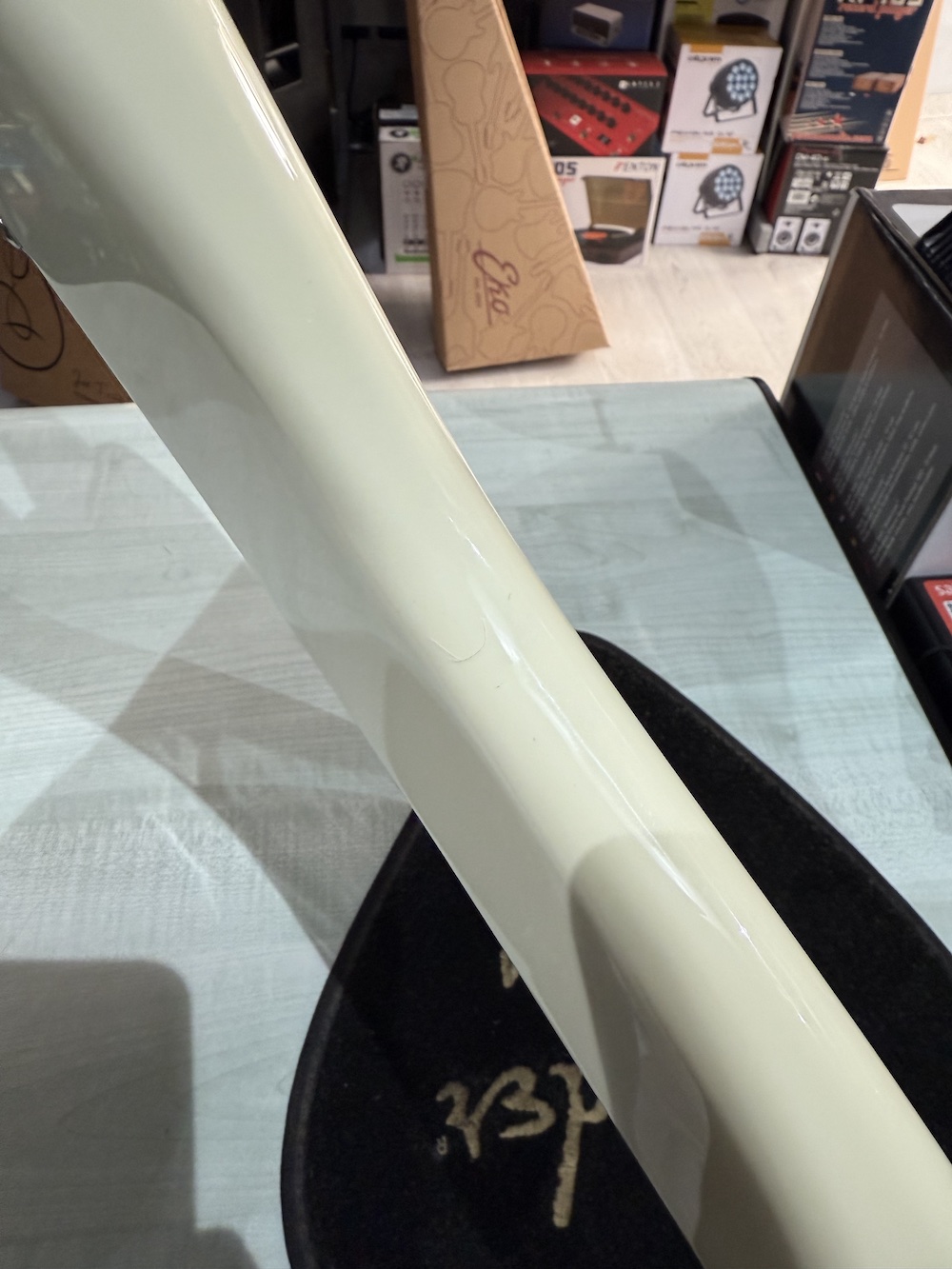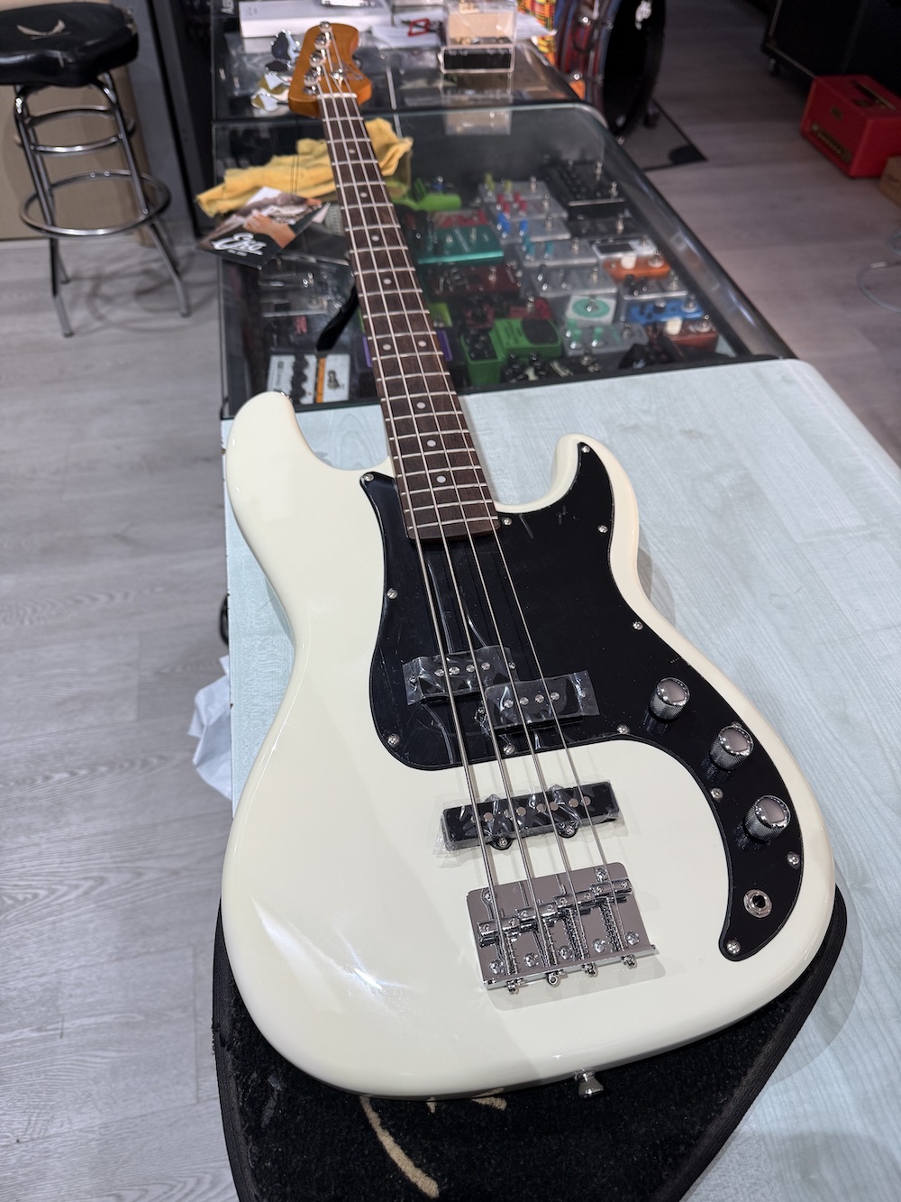 The PJ-400 Vintage White is the 4-string electric bass from “Tribute 400”