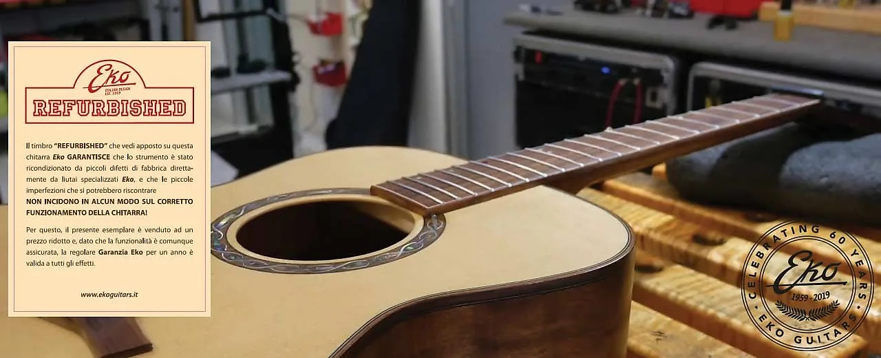 All Eko guitars of “second choice” will now have the “Refurbished” stamp and sticker.