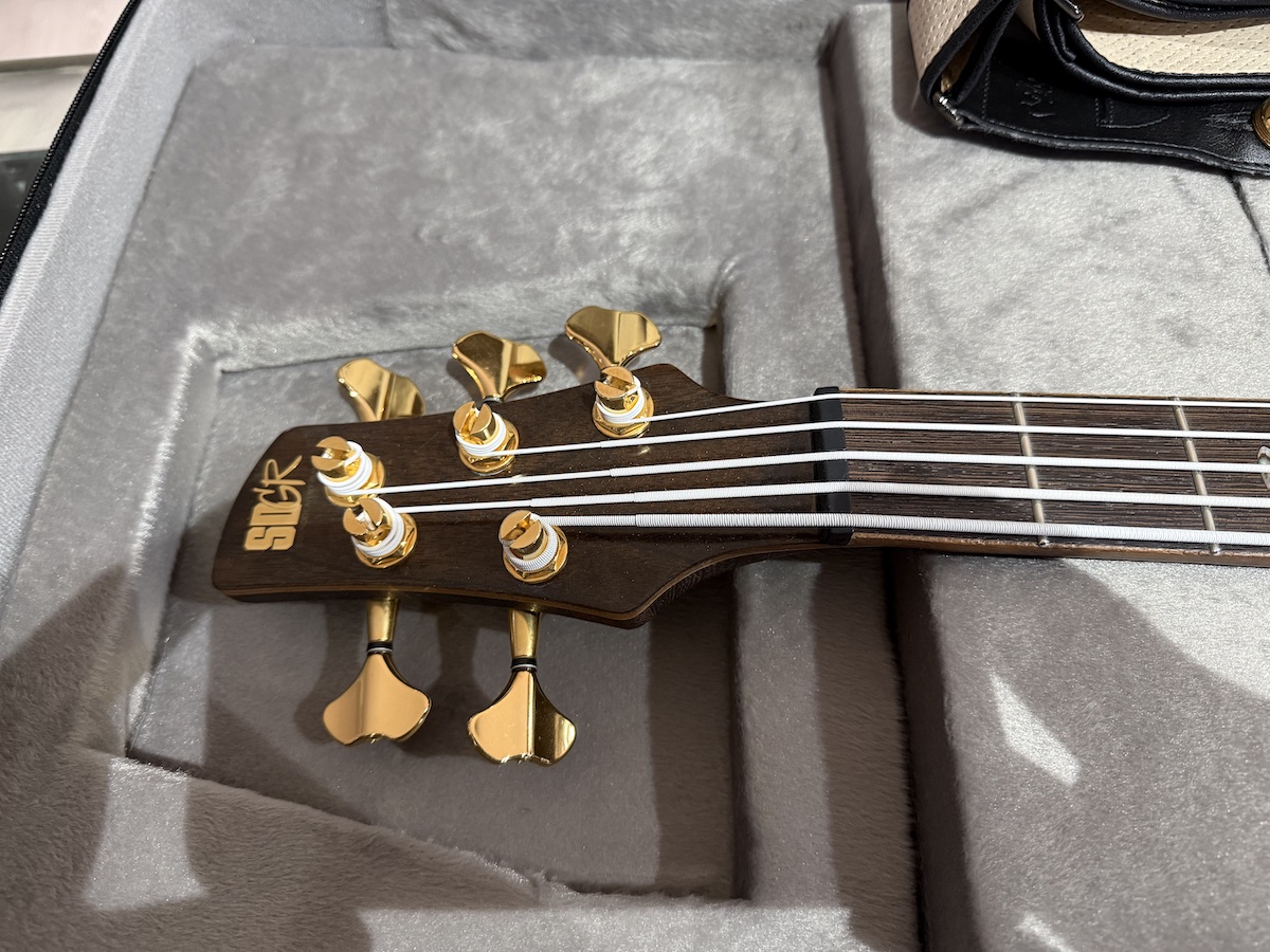 Used Ibanez 5-String Electric Bass Guitar in excellent condition, with DR White strings, including a Righton Strap with Gold Schaller S-locks
