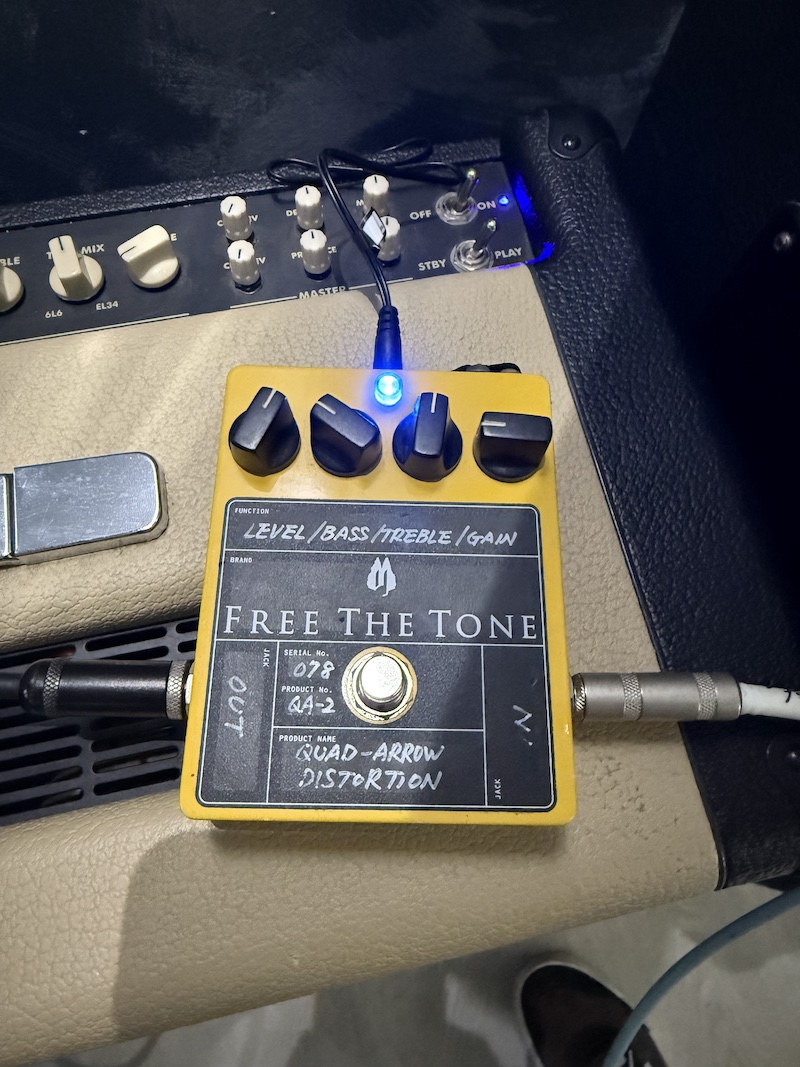 • NOTE : The Free The Tone Quad-Arrow Distortion was developed to create the best sound in combination with a clean amp/channel such as a Hiwatt. Please note that there may be too much treble if you use the Tone Quad-Arrow Distortion with an amp which has limited headroom and distorts quickly.