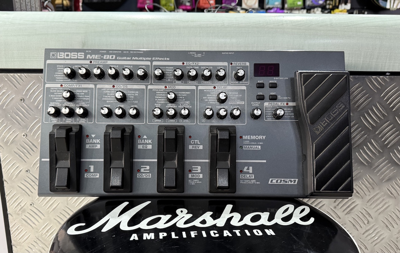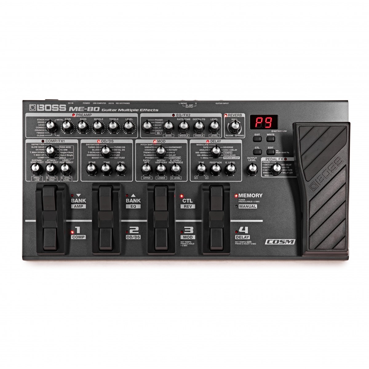 From an array of ultra-realistic COSM amp models replicating the coolest amps in history, to pro Boss effects that will push your songs to the limits, the ME-80’s effects are easy to access by the pedalboard-style layout of footswitches, intuitive controls and expressions pedal, letting you bring the noise fast and shape in real-time.